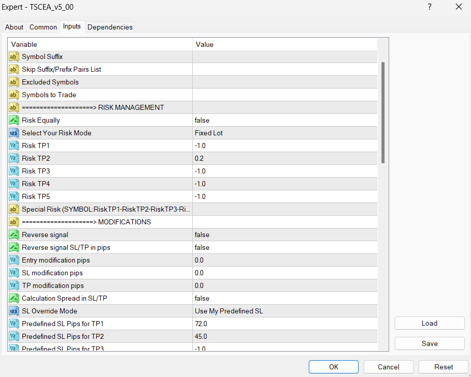 2. Input the preferred fixed lot size in Risk TP2 field &