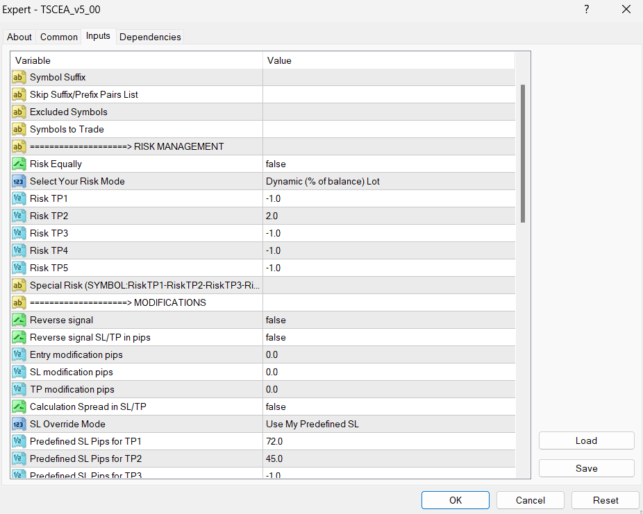 1. Select risk mode to Dynamic (% of balance) Lot and then the TP you want to take. (Here’s an example of taking only TP2 but ignoring tp1 and tp3, tp4 and tp5)