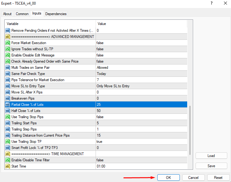After clicking the section, enter your preferred percentage of close partial. Here, you can see, I have entered 25. There is no need to put % after entering the number. Last of all, make sure that you have clicked OK. Otherwise, all of the settings will not be saved! (See the image below)