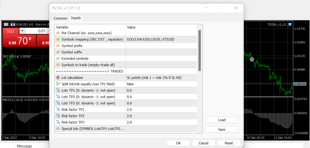 After clicking double on the cap/smiley face, the EA of the telegram copier will appear on the screen like this. (See the image below)