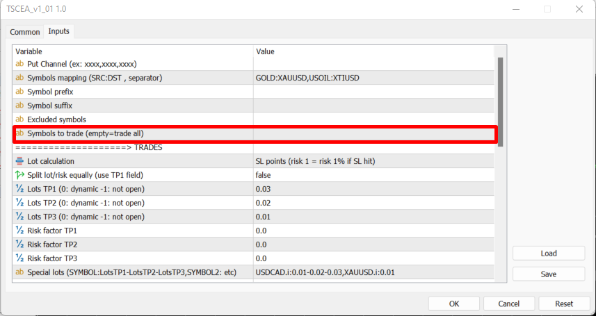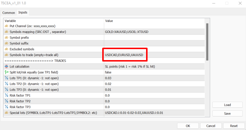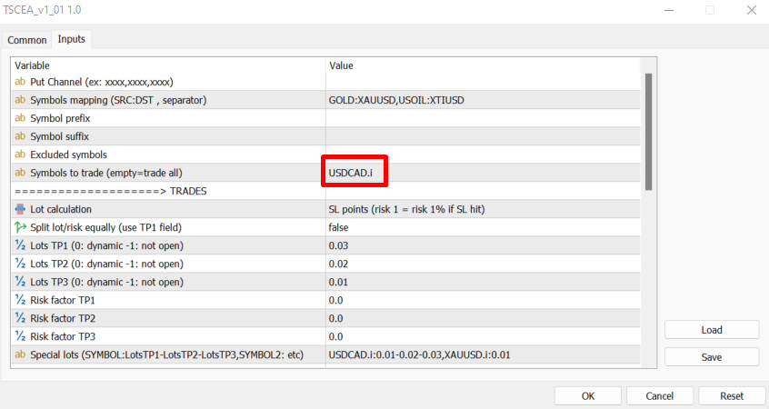 Suppose you want USDCAD to be traded only in the signal copier. So, you will enter just USDCAD here. (See the image below)