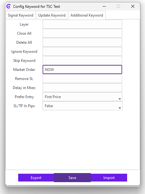 For example: Our signal provider commands NOW keyword for the market order, but the price is not a market price. So, we need to enter NOW keyword in the Market Order field for market execution