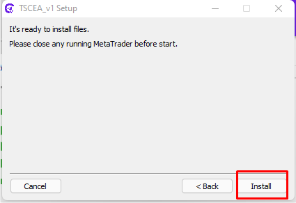 1. Double-click the MT4 or MT5 TSC EA file according to your preference and select NEXT.