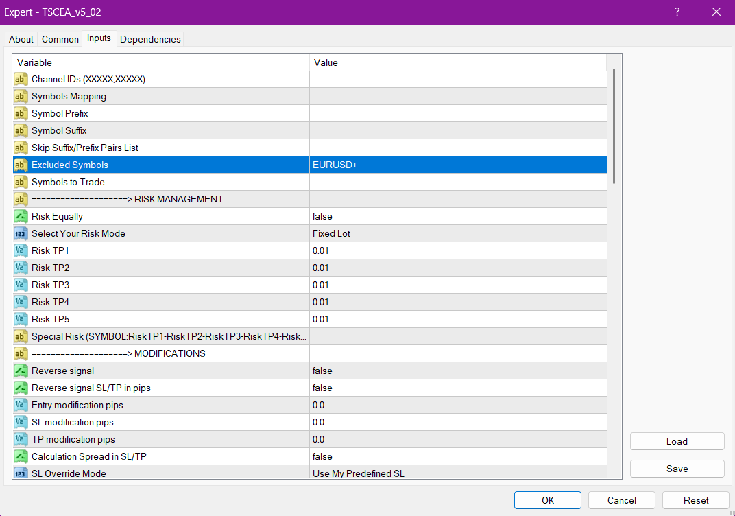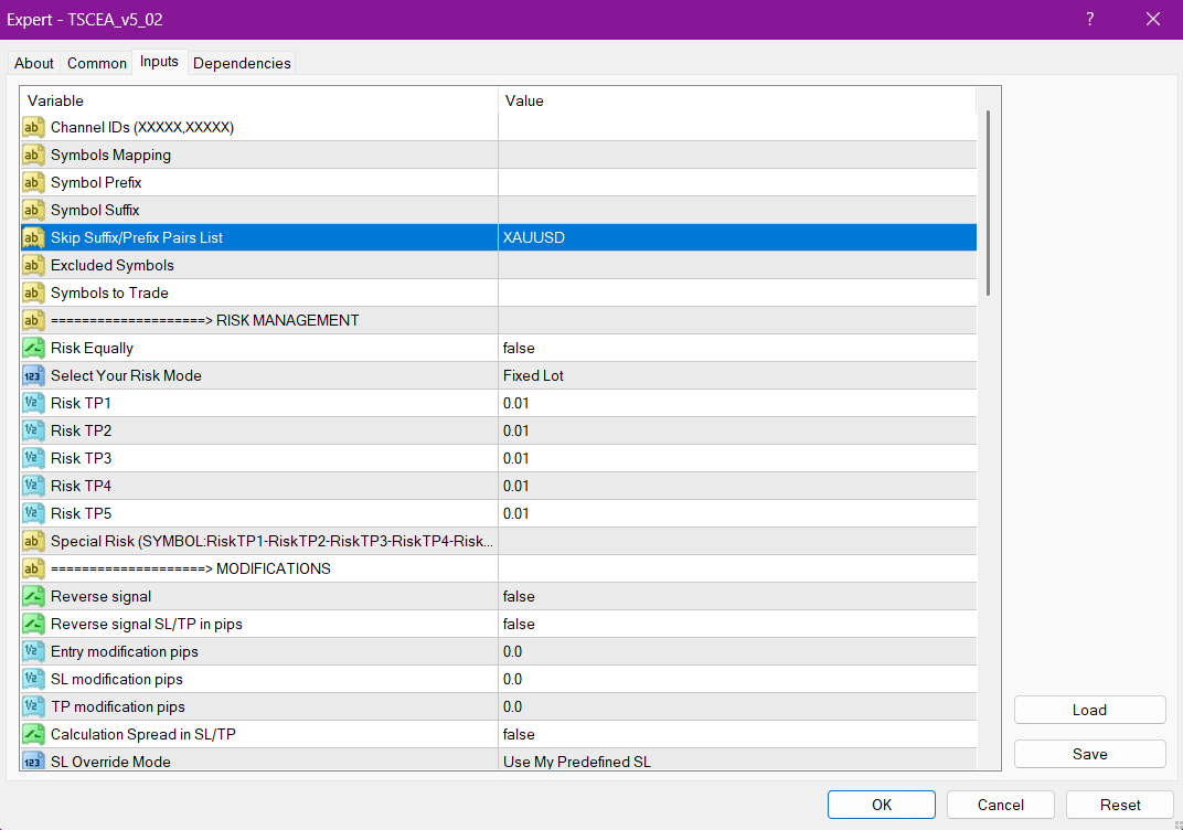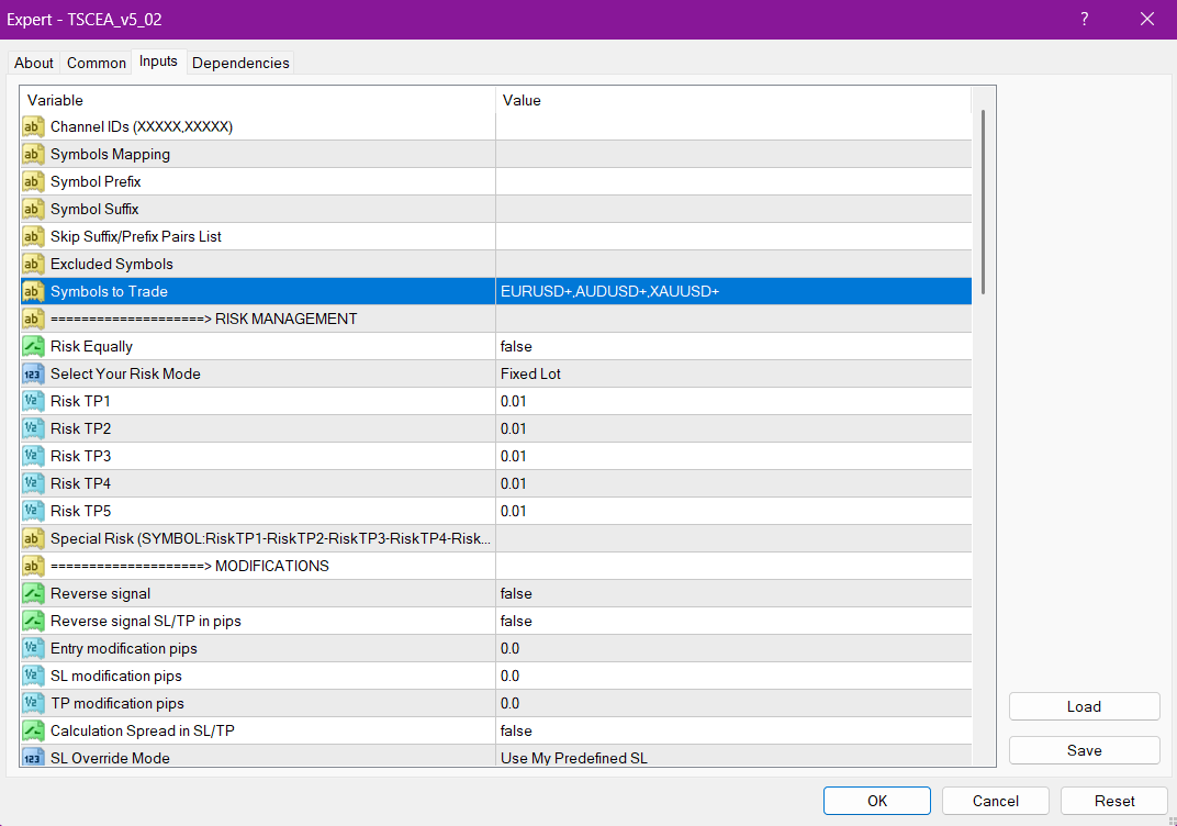 For example- if you want to trade EURUSD, AUDUSD and XAUUSD pairs from one channel, you need to input these pair names in this option. But if your broker has any suffix or prefix with the pair names, you need to add suffix/prefix as well.