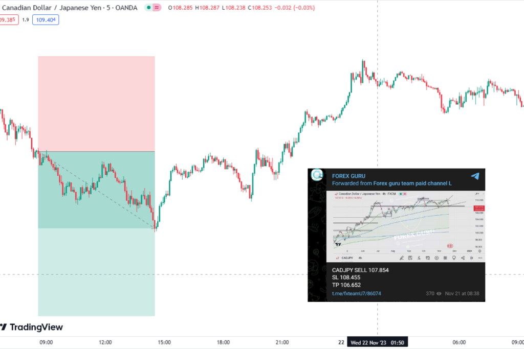 Up next, CADJPY signal was sent with a sell signal at 107.854 price level. According to their shared Analysis, trade was taken after trendline break, but on Daily timeframe market was going sideways, & the entry was near the support level, even though 50 pips was secured–market shot straight up from daily support.