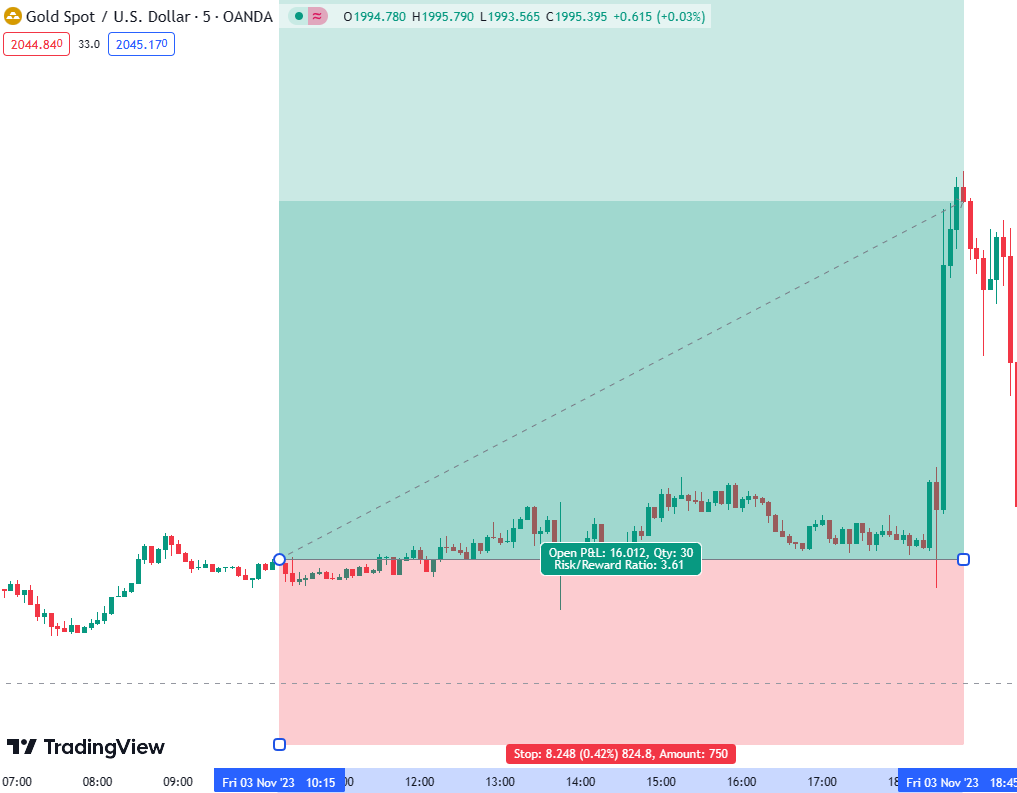 Second, a Gold Buy trade taken just before the London open. Higher timeframe market structure was in line with the entry timeframe & after the New York session started & NFP was released market pushed the price even deeper in profit of 125+ pips.
